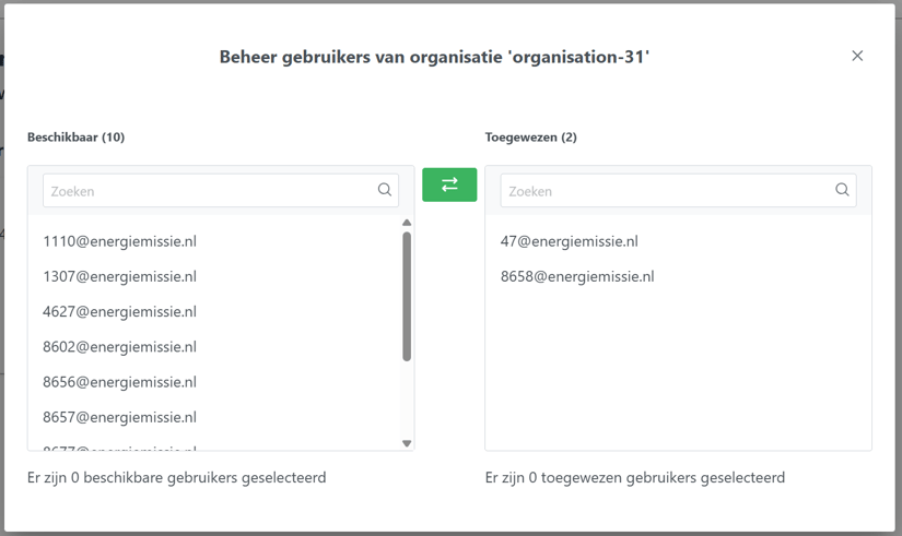 - Selecteer in het linkerveld ('Beschikbaar') de gebruikers die je wil toewijzen.