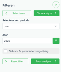 - Optioneel - Gebruik 2e periode ter vergelijking: Met de vergelijkingsfunctie kun je snel zien hoe het verbruik zich ontwikkelt ten opzichte van een eerdere periode. Dit is handig voor het signaleren van trends of afwijkingen.